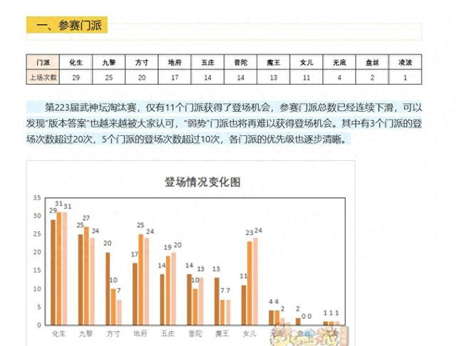 223届武神坛的数据统计出来了,出场门派次数最多的,还是化生寺。